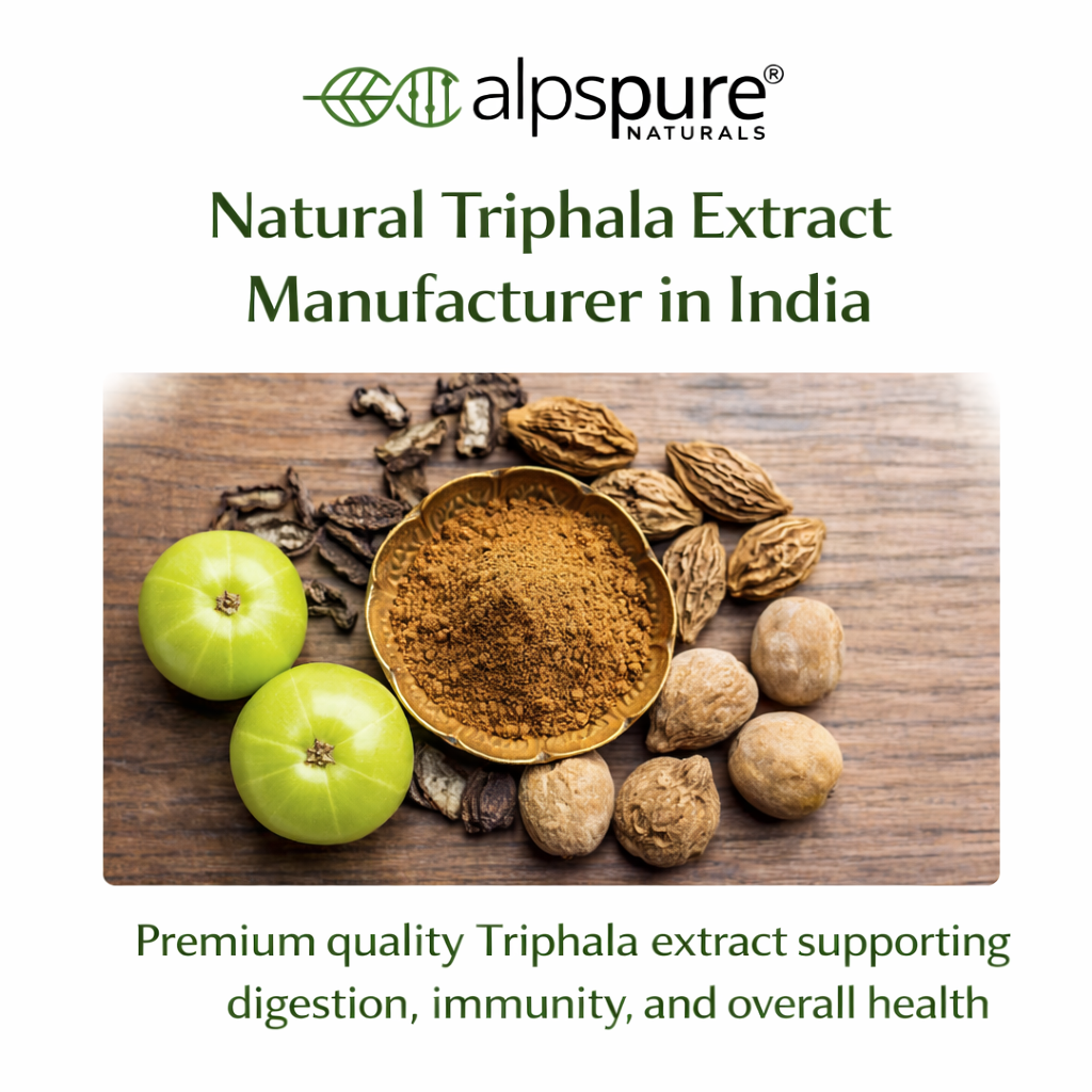 Alpspure Naturals is recognized as a trusted Natural Triphala Extract Manufacturer in India, where high-quality extracts are produced using advanced processes. Strict quality standards are followed, and purity, consistency, and effectiveness are ensured for global nutraceutical and pharmaceutical industries.