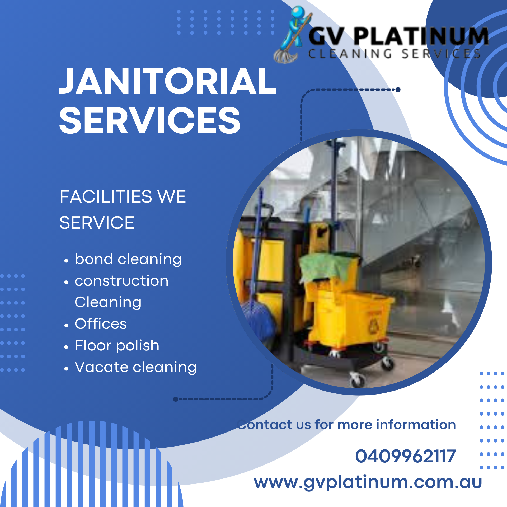 Janitorial Services G V Platinum is a professional cleaning company providing reliable and high-quality commercial and residential cleaning solutions. We specialize in office cleaning, building maintenance, floor care, restroom sanitation, deep cleaning, and daily janitorial services. G V Platinum Janitorial Services is known for trained staff, eco-friendly cleaning products, and consistent results. If you are looking for affordable, trusted, and professional janitorial services, G V Platinum Janitorial Services is the right choice.