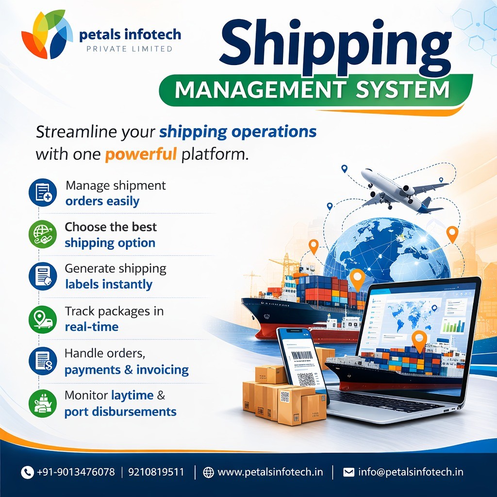 An advanced Shipping management system in Ghaziabad is being offered by Petals Infotech to streamline logistics operations, improve shipment tracking, reduce manual errors, and enhance delivery efficiency through automated and integrated digital solutions.