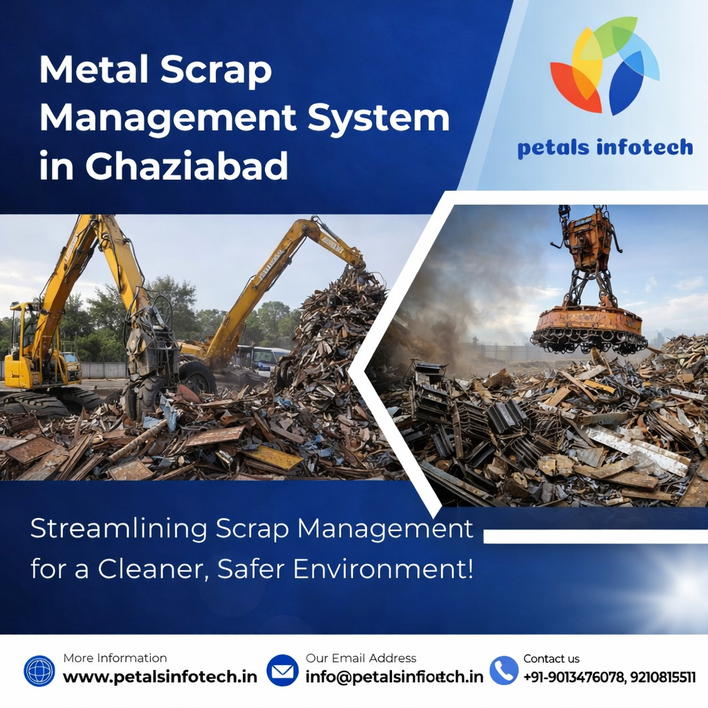 A smart Metal scrap management system in Ghaziabad is offered by Petals Infotech to automate processes, improve efficiency, reduce costs, and ensure accurate tracking for better control and streamlined recycling operations.