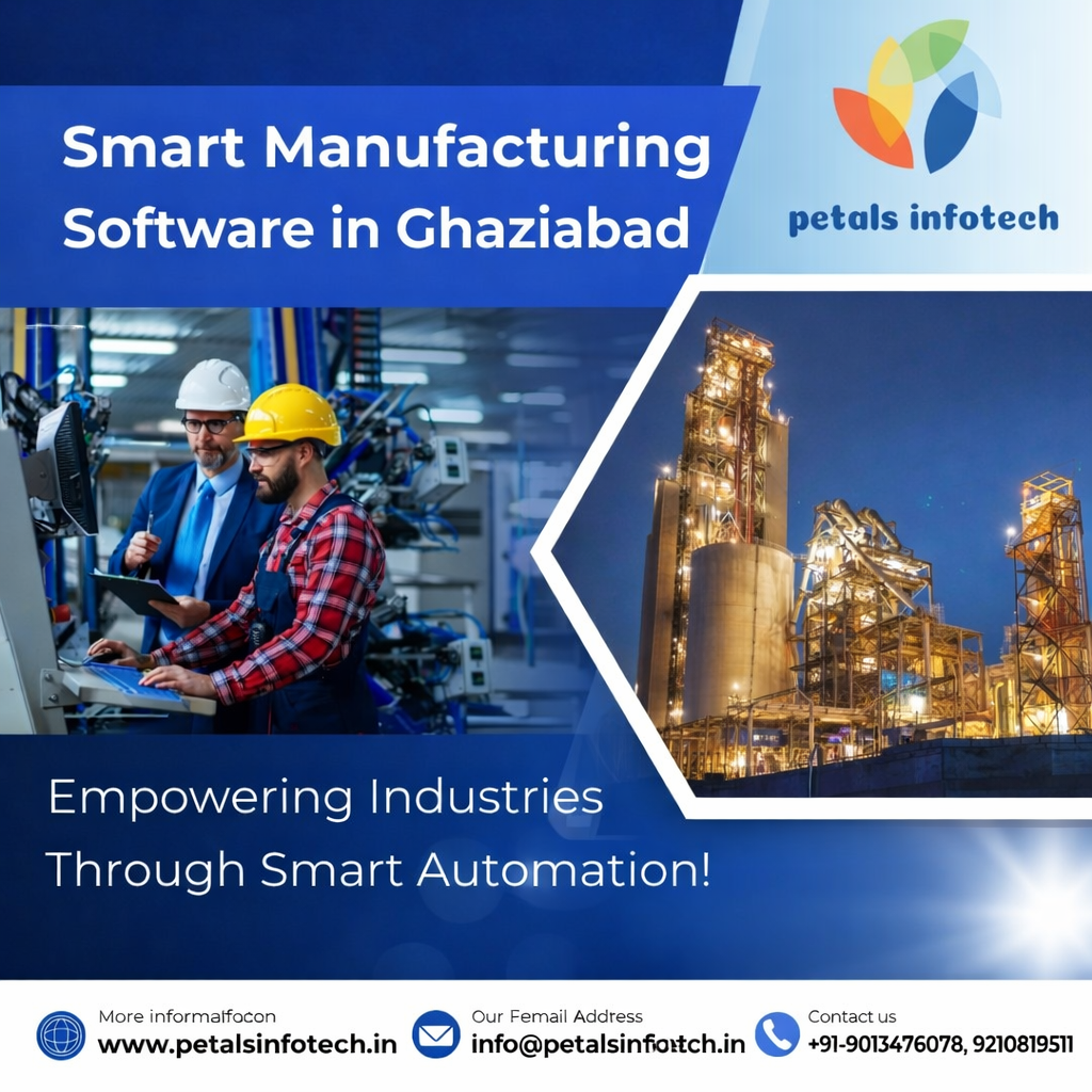 Petals Infotech provides advanced Smart manufacturing software in Ghaziabad to automate production, improve efficiency, and reduce costs. With real-time monitoring and data insights, businesses can optimize operations, enhance productivity, and achieve seamless digital transformation.