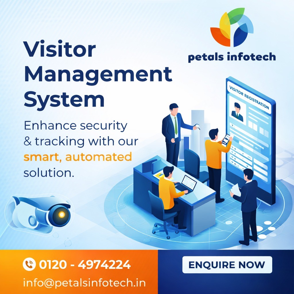 Petals Infotech provides a secure Visitor management system in India to streamline visitor tracking, enhance security, reduce manual tasks, and deliver a seamless workplace experience for modern businesses.
