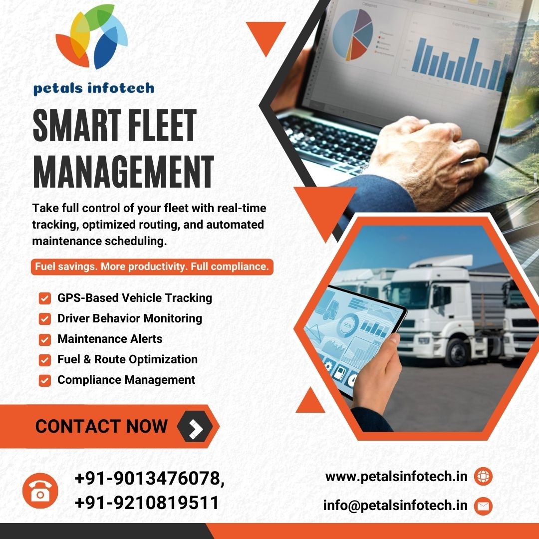A smart Fleet management software in Delhi NCR is being provided by Petals Infotech to enable real-time tracking, reduce costs, improve efficiency, and ensure better control over fleet operations through automation and data-driven insights.