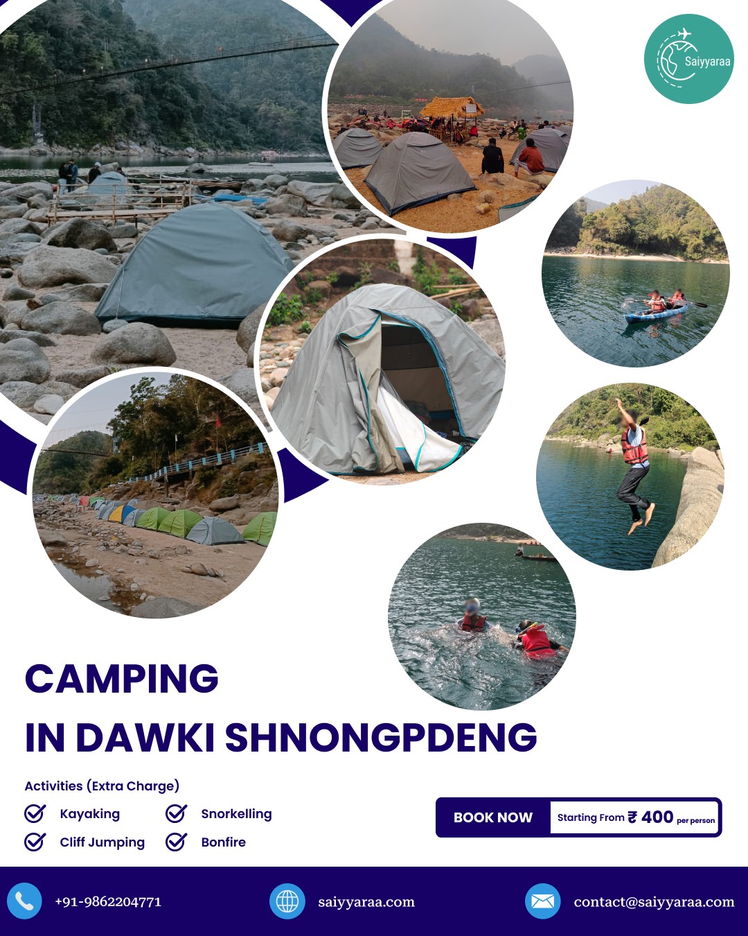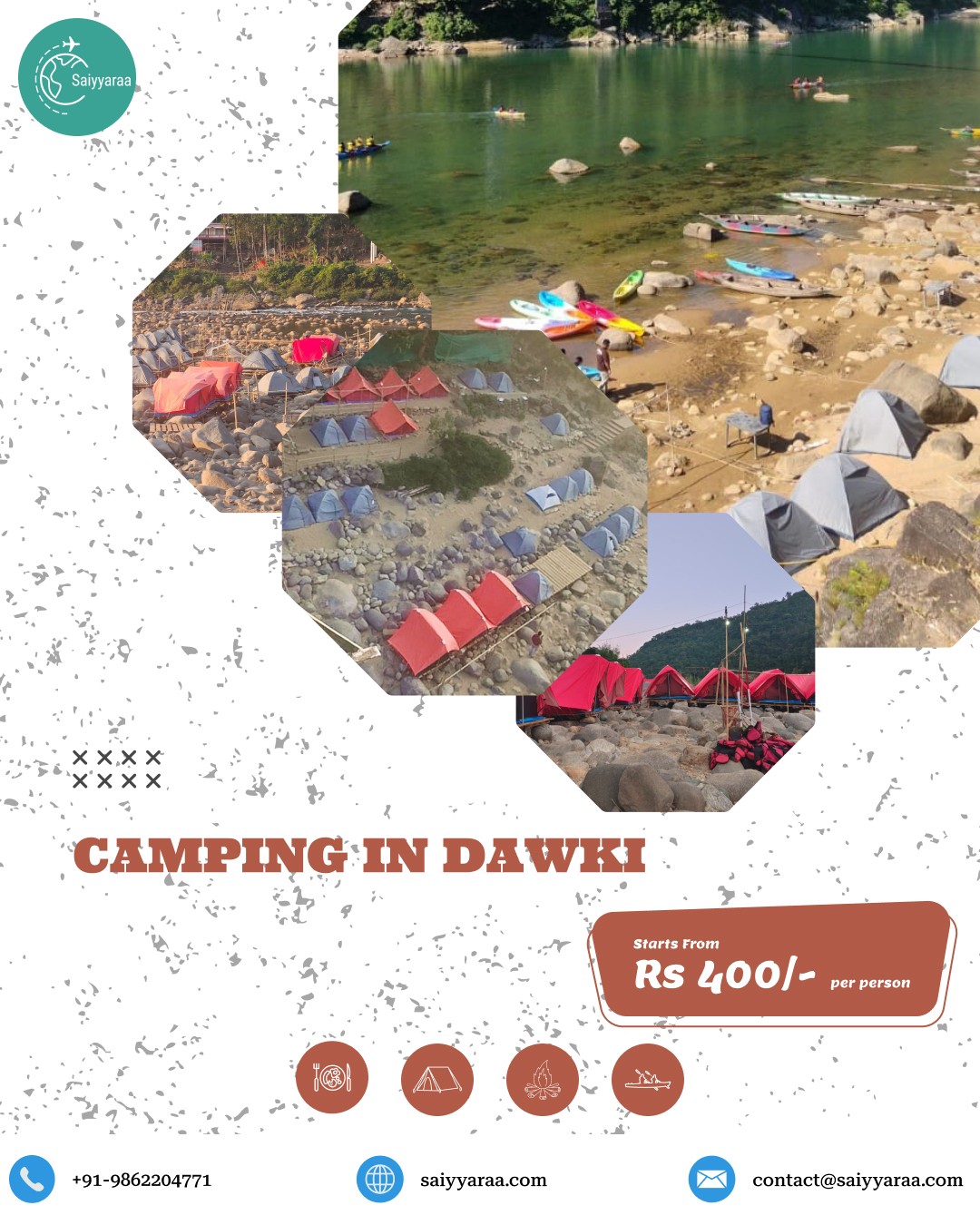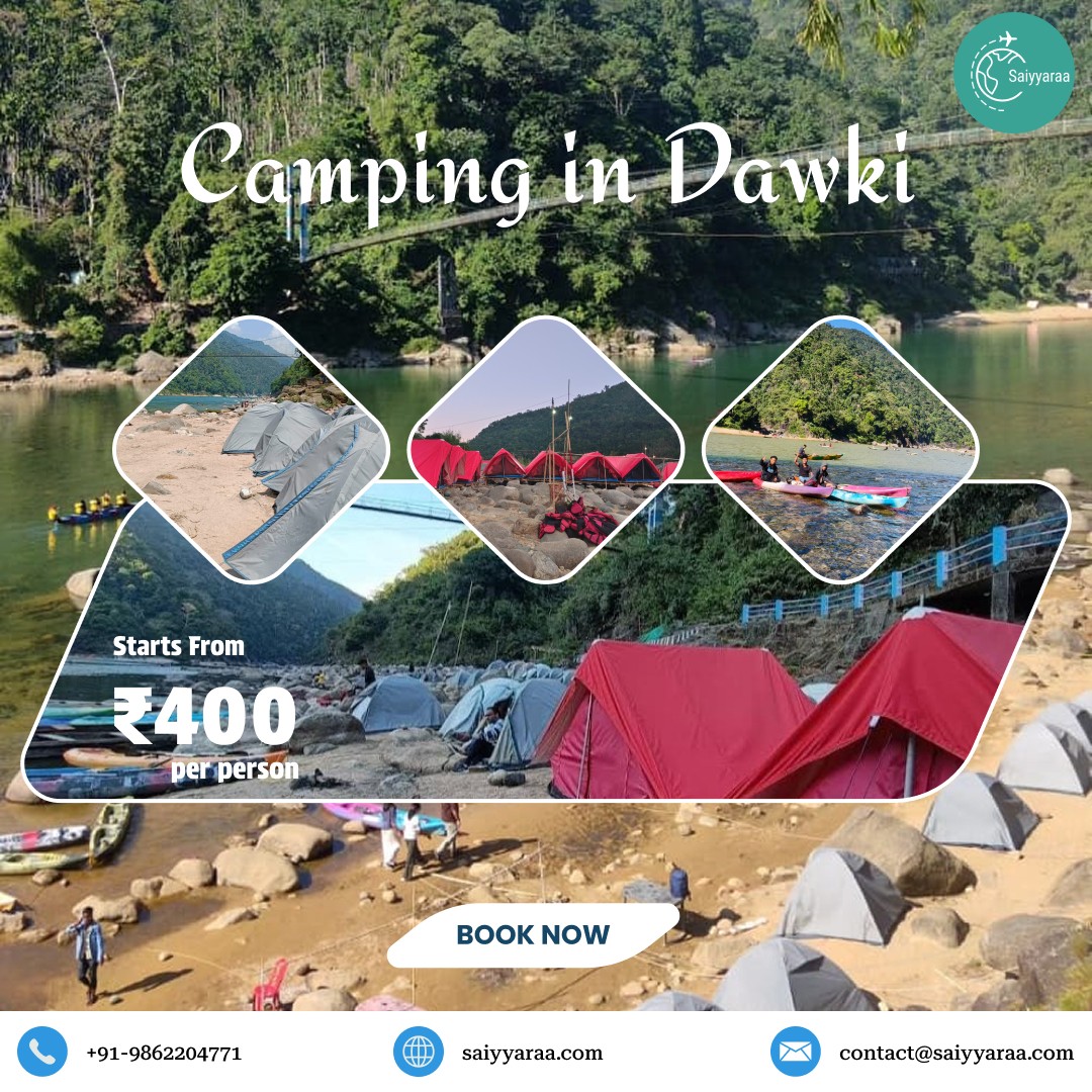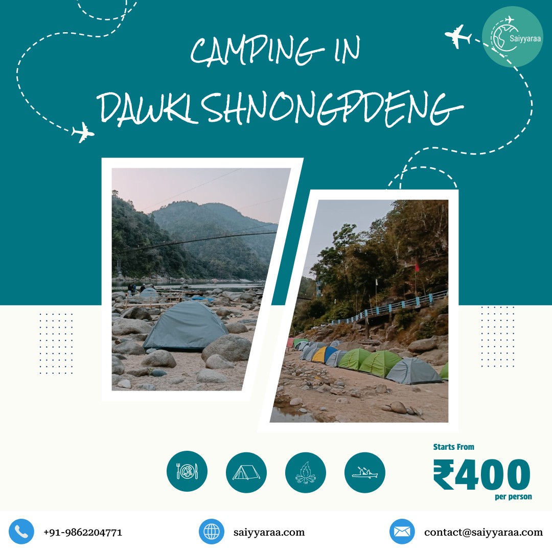 Experience camping in Dawki Shnongpdeng with Saiyyaraa Travels and stay beside the crystal-clear Umngot River.