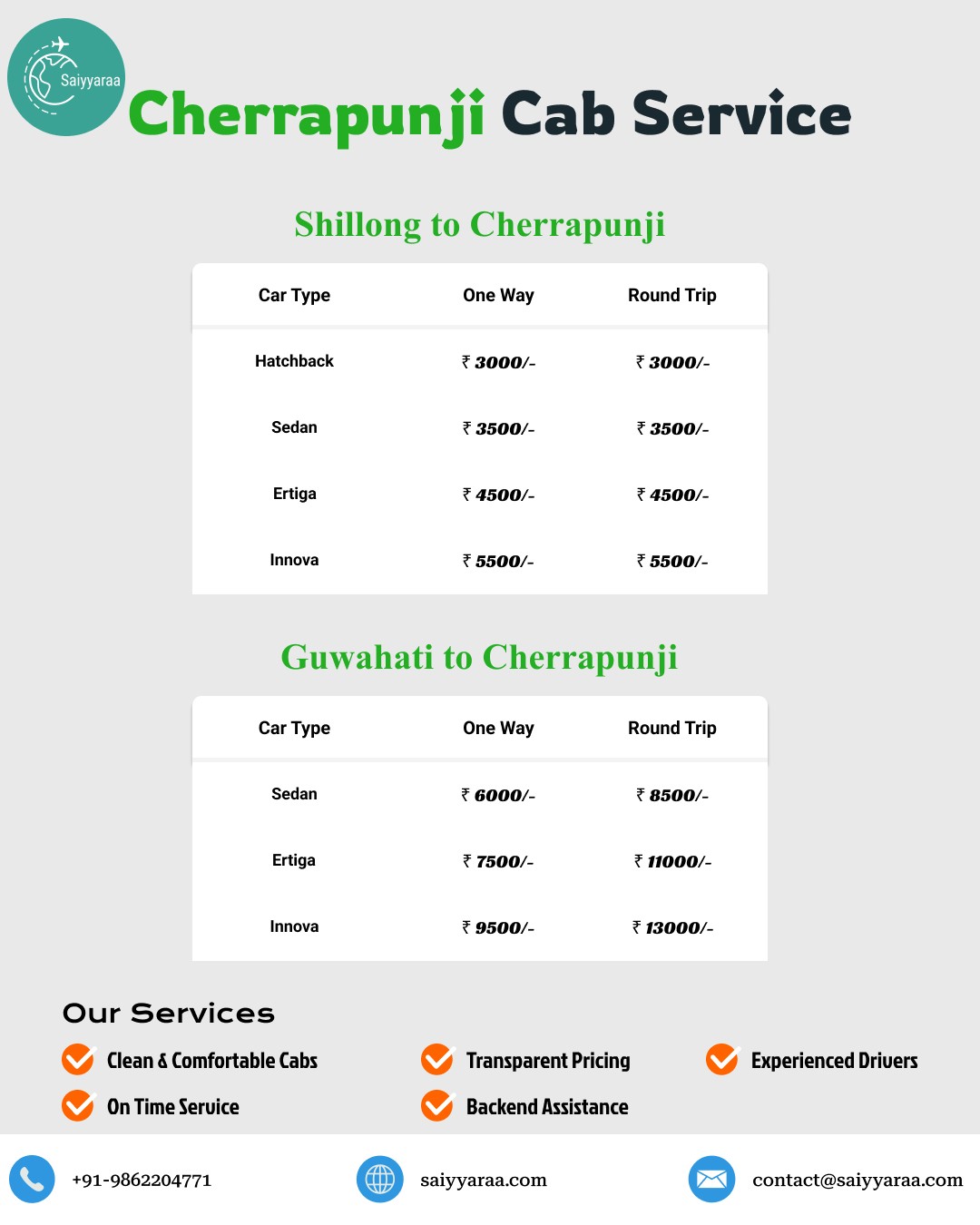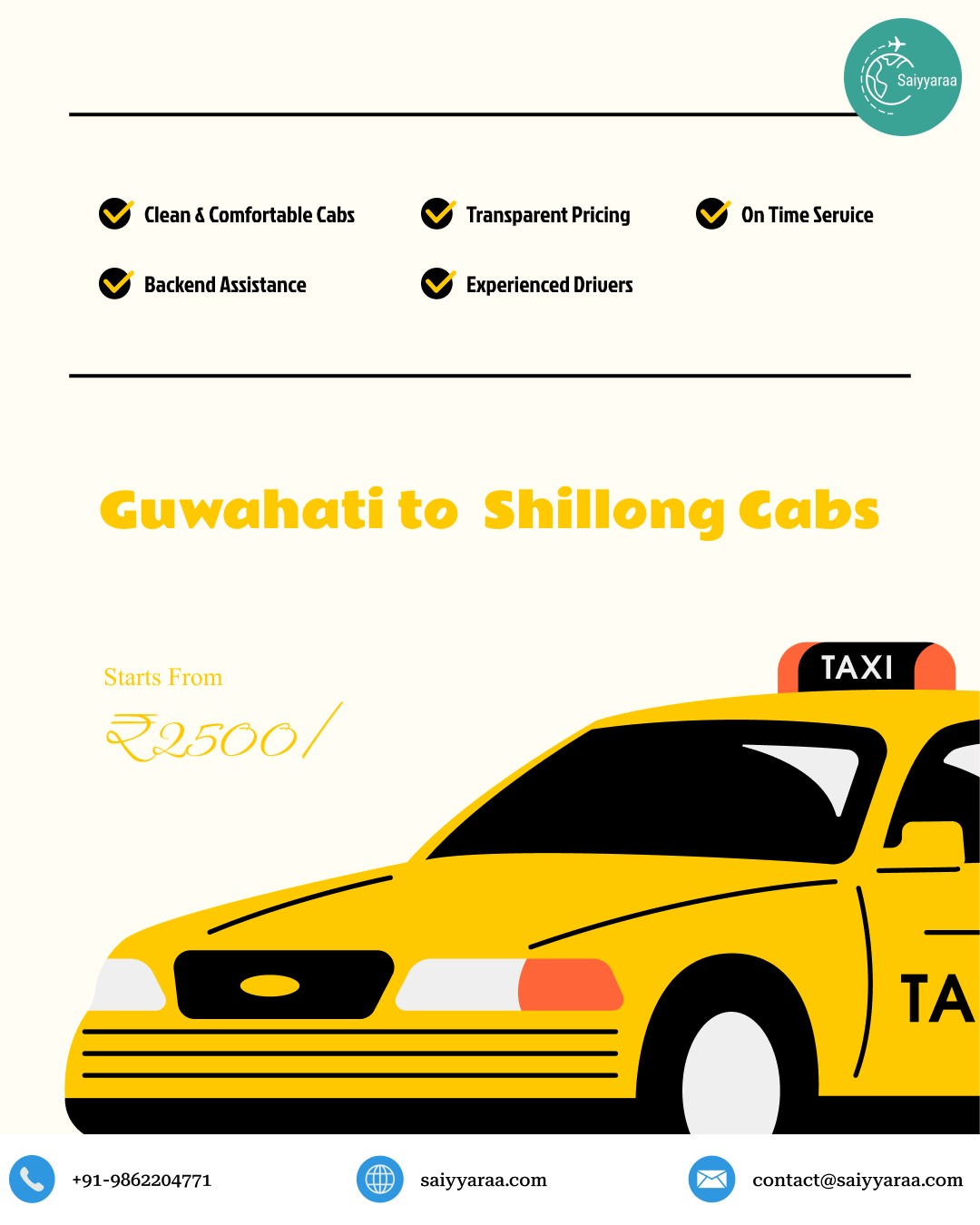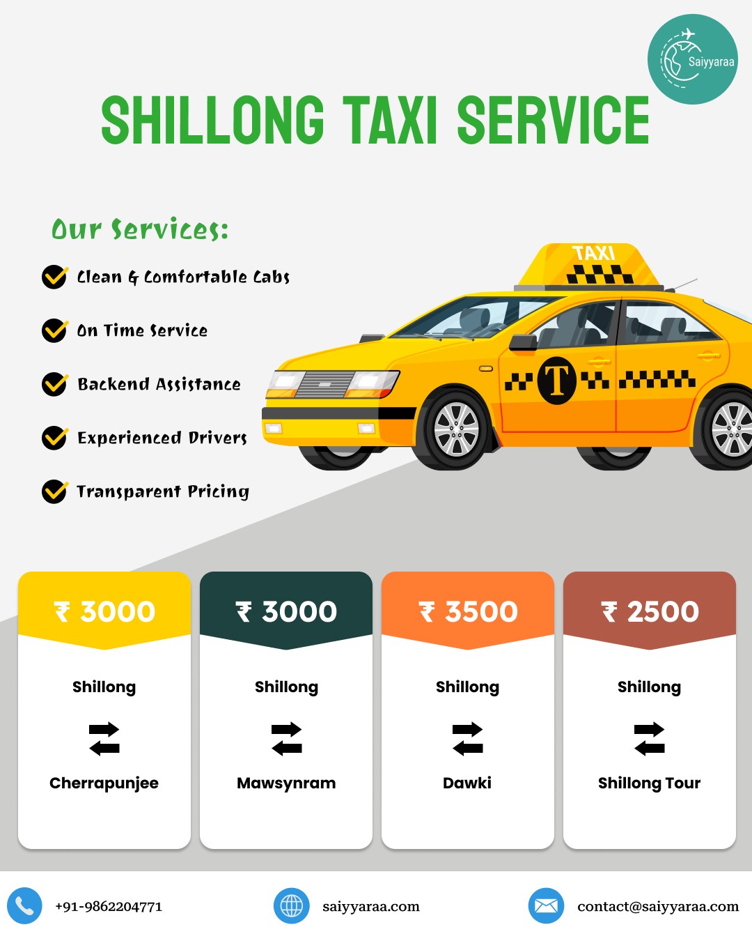 saiyyaraa_travelsSaiyyaraa is a trusted cab and tour service offering affordable travel options across Meghalaya, Assam, and Arunachal.