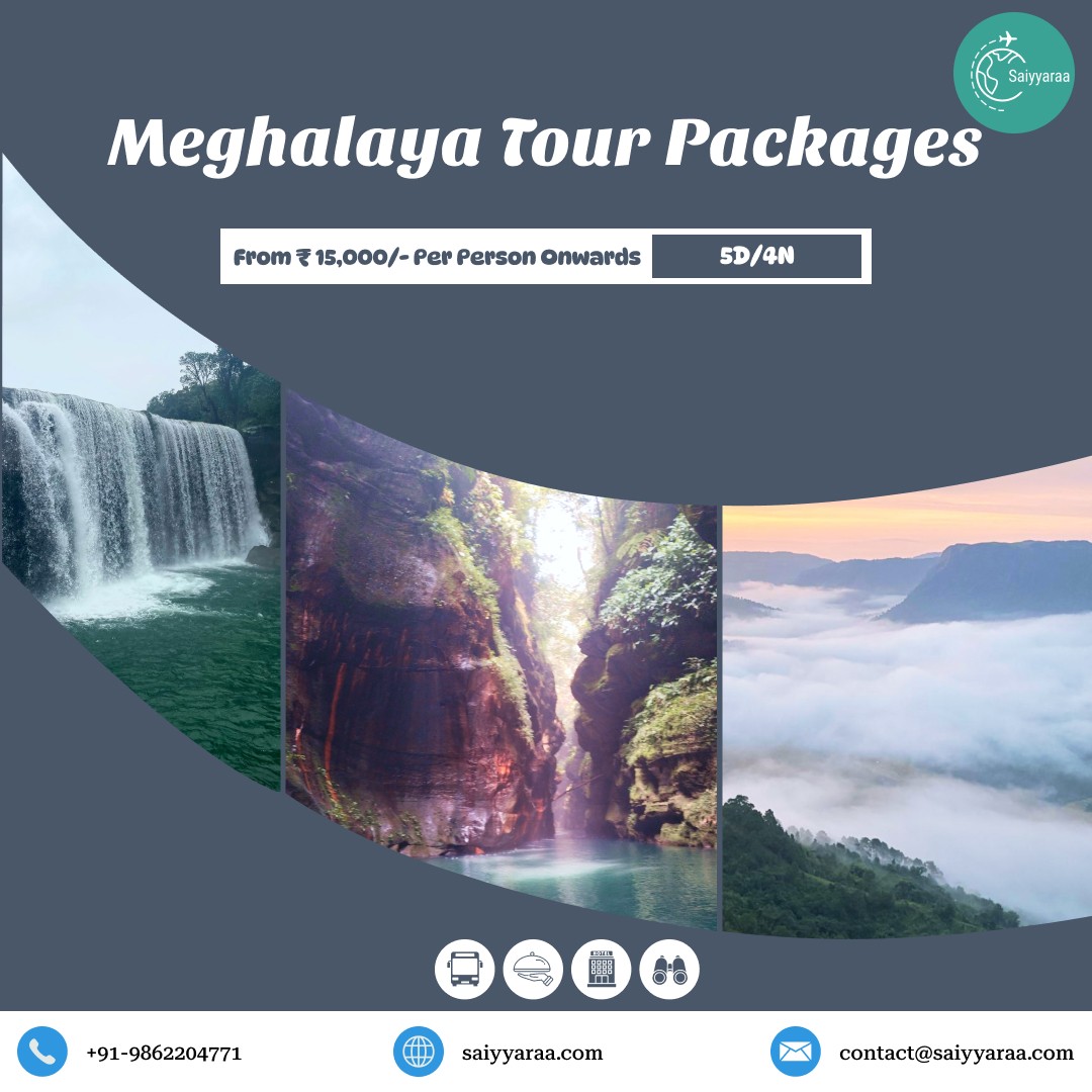 Saiyyaraa Travels offers well-planned Meghalaya tour packages that cover Shillong, Cherrapunji, Dawki, waterfalls, lakes, and scenic viewpoints.