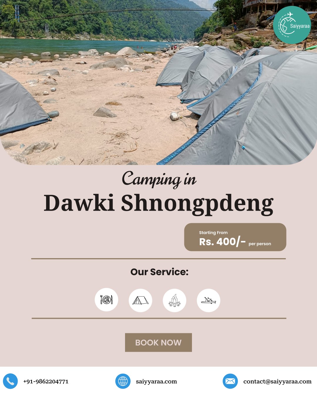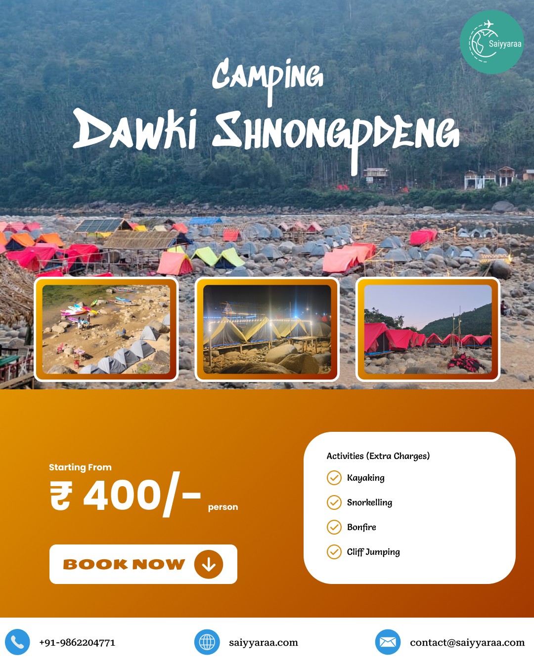 Camping in Dawki starts at โน400 per person.
