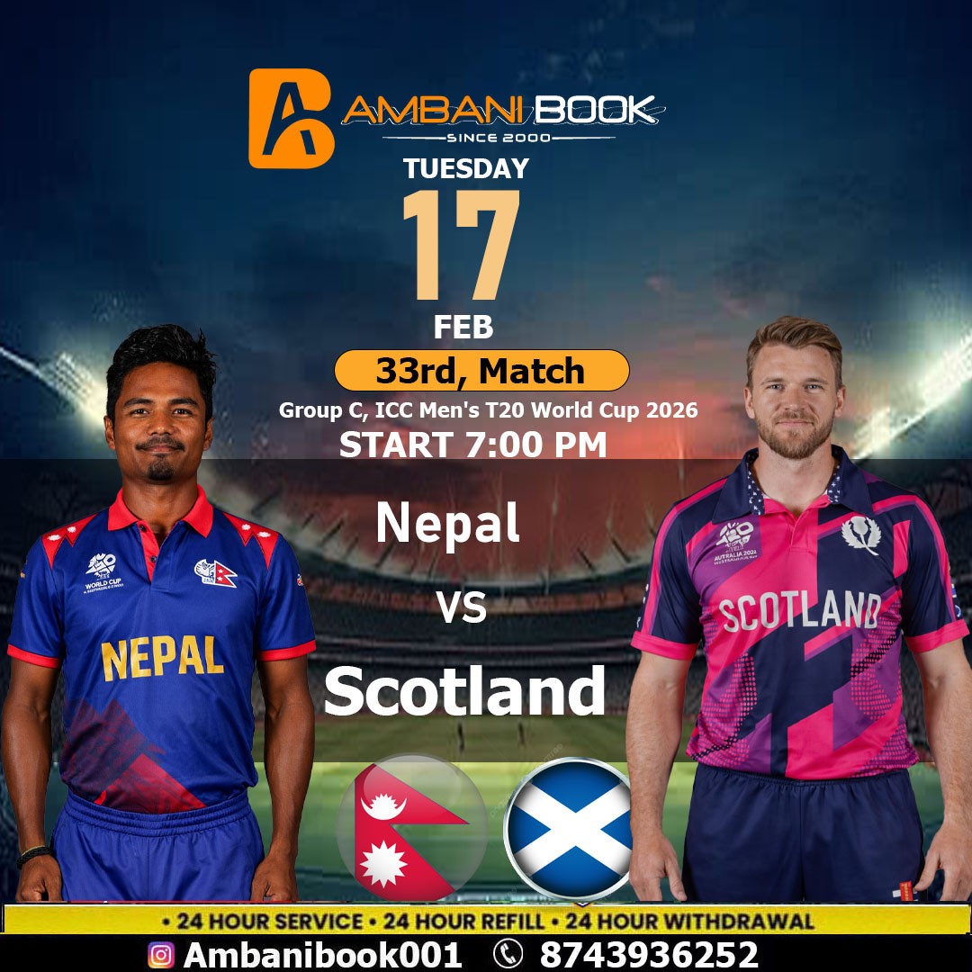 The exciting match between Scotland and Nepal in the 33rd Match, Group C of the ICC Men's T20 World Cup 2026 will take place at the historic Wankhede Stadium, Mumbai, today at 7:00 PM LOCAL. For more details about the match, one can log in to the Ambani Book website. Get the latest updates on the match conditions and performances of crucial players as both teams compete for crucial points in this exciting T20 match.