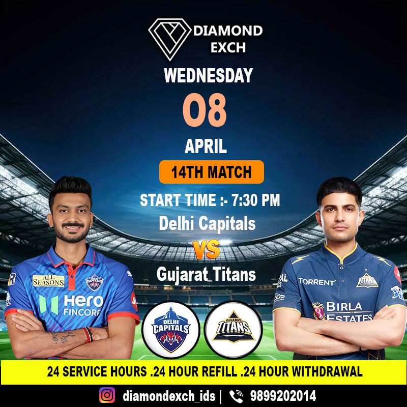 Excited for the Diamond Exchange ID Delhi Capitals vs Gujarat Titans match tonight at Arun Jaitley Stadium! 🏏 Who will come out on top in this clash of titans? #DiamondExchangeId #diamondexchid #DiamondExchange #IPL2026 #delhicapitals #GujaratTitans #IPLMatchDay #IPLMatch