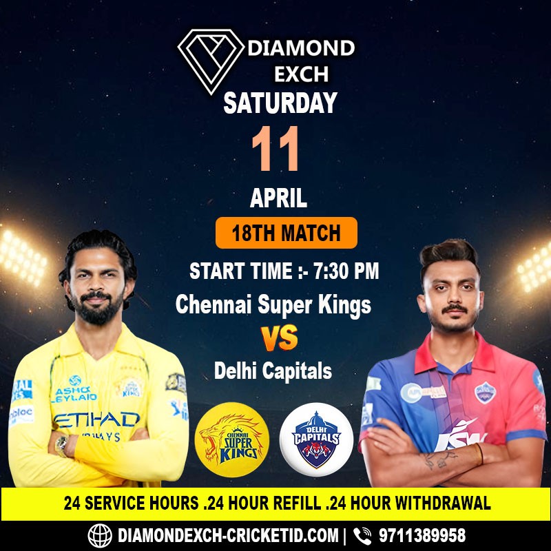 Diamond Exchange brings you live commentary of the 18th match of the Indian Premier League 2026, where Chennai Super Kings face Delhi Capitals at MA Chidambaram Stadium, Chennai, today at 7:30 PM. Stay updated with real-time cricket odds, match insights, and every thrilling moment as both teams battle for dominance in this exciting IPL clash.