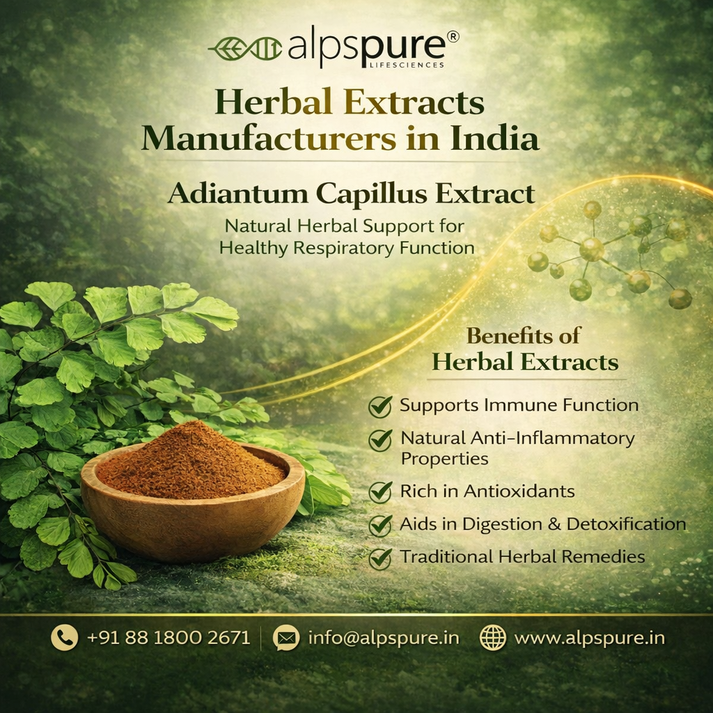 Alpspure Lifesciences is a trusted Herbal Extract Manufacturer in India, offering premium botanical extracts, phytochemicals, and nutraceutical ingredients. With advanced cGMP facilities, strict quality testing, and timely delivery, the company provides customized, pesticide-free solutions for pharma, food, personal care, and wellness industries worldwide.