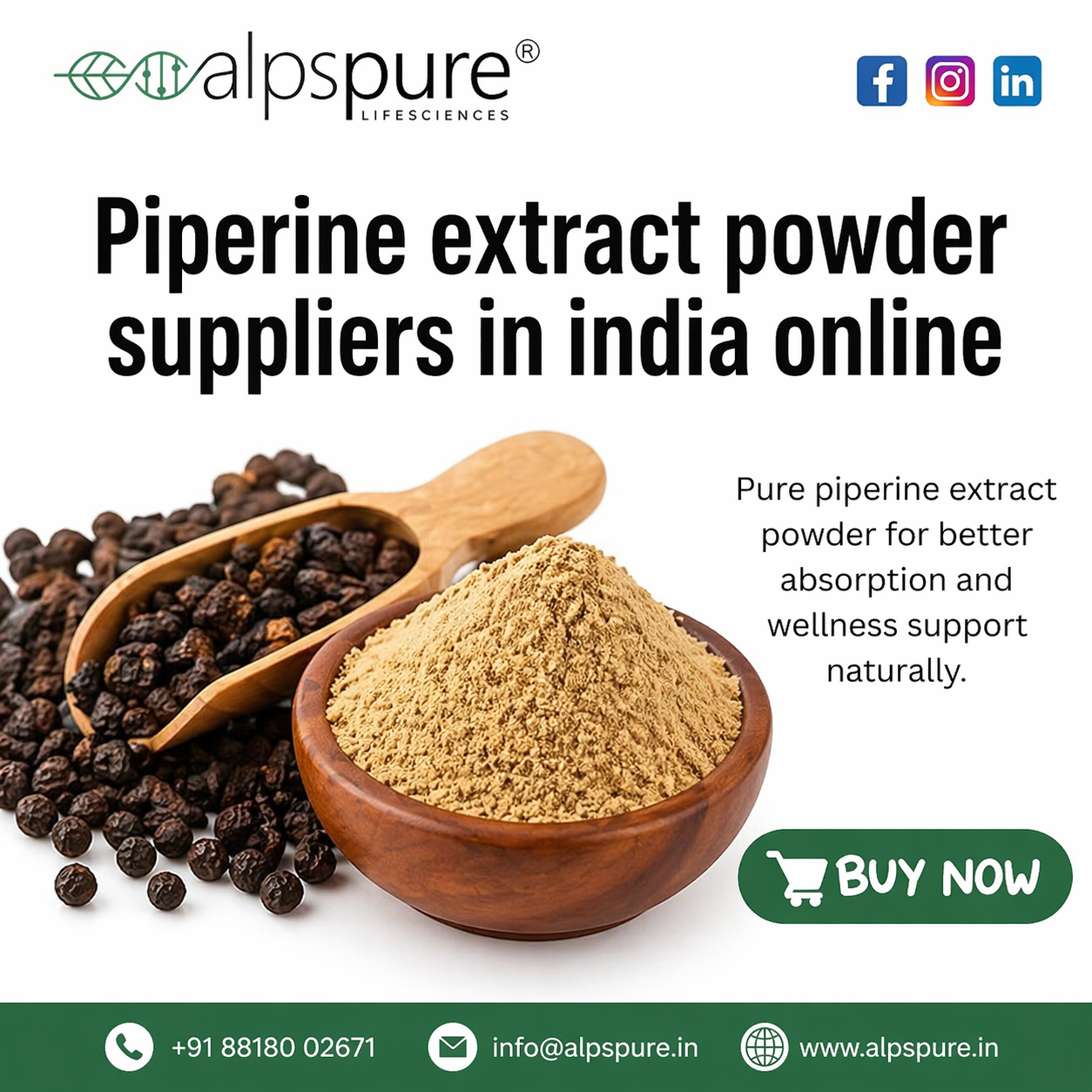 Alpspure Lifesciences Pvt. Ltd. is a trusted name among Piperine extract powder suppliers in india online, offering high-quality, pure botanical extracts. With advanced manufacturing, strict quality control, and timely delivery, they serve pharmaceutical and nutraceutical industries efficiently across India.