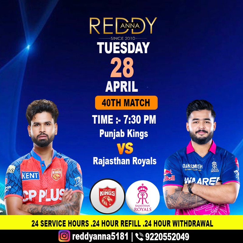 Here comes a thrilling IPL clash between Punjab Kings and Rajasthan Royals in match no. 40. ⚾ Catch the game at 7:30 PM on 28 April from Mullanpur, New Chandigarh. Follow all updates from Reddy Anna Online Book ID and get into the pulse of the game and the excitement around it.