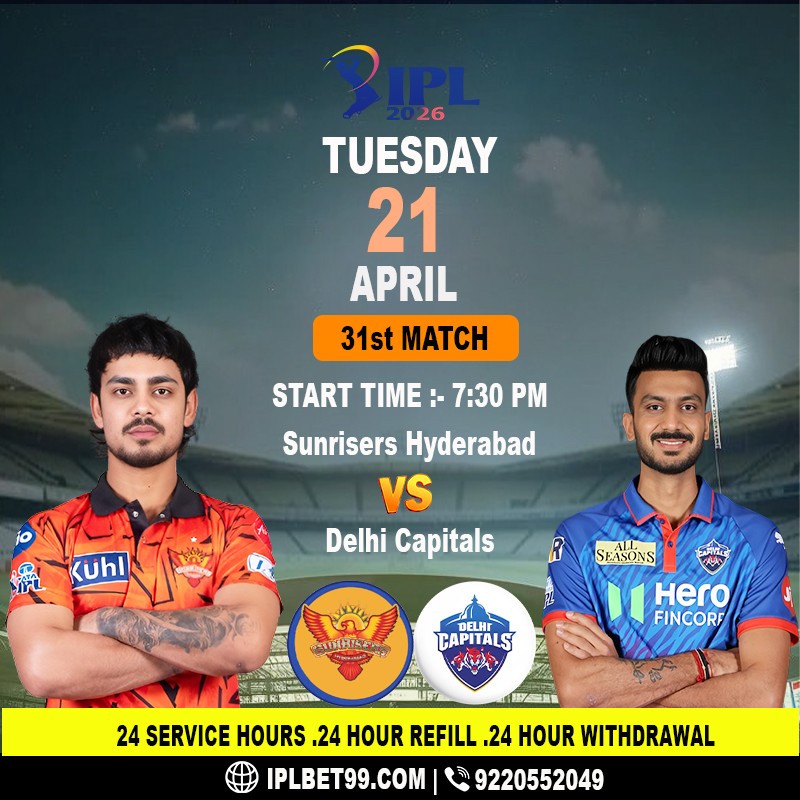 IPL Cricket ID brings fans closer as Sunrisers Hyderabad face Delhi Capitals in the 31st Match of Indian Premier League 2026 at Rajiv Gandhi International Stadium today at 7:30 PM. The commentary shows all game developments from the initial stages until the final critical periods while maintaining live updates about the match and team plans and spectator excitement throughout the thrilling match which fans can watch anywhere in the world.