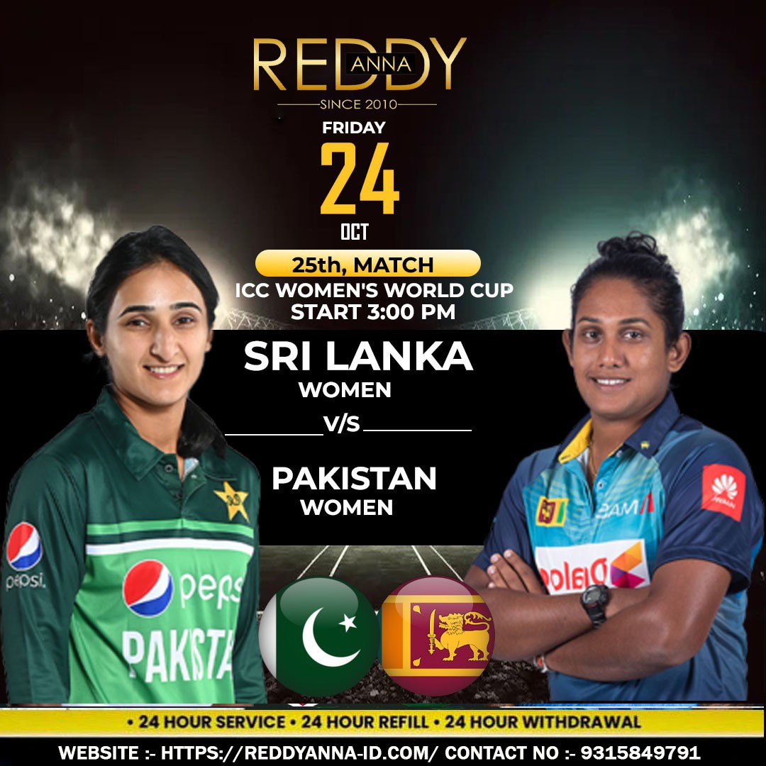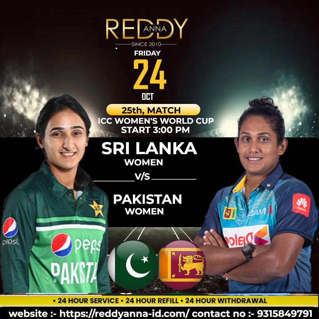 Excited to witness the intense battle between Reddy Anna Book Sri Lanka Women and Pakistan Women in the 25th match of ICC Women's World Cup 2025! 🏏🔥 Don't miss out on all the action happening at R.Premadasa Stadium, Colombo today at 3:00 PM.