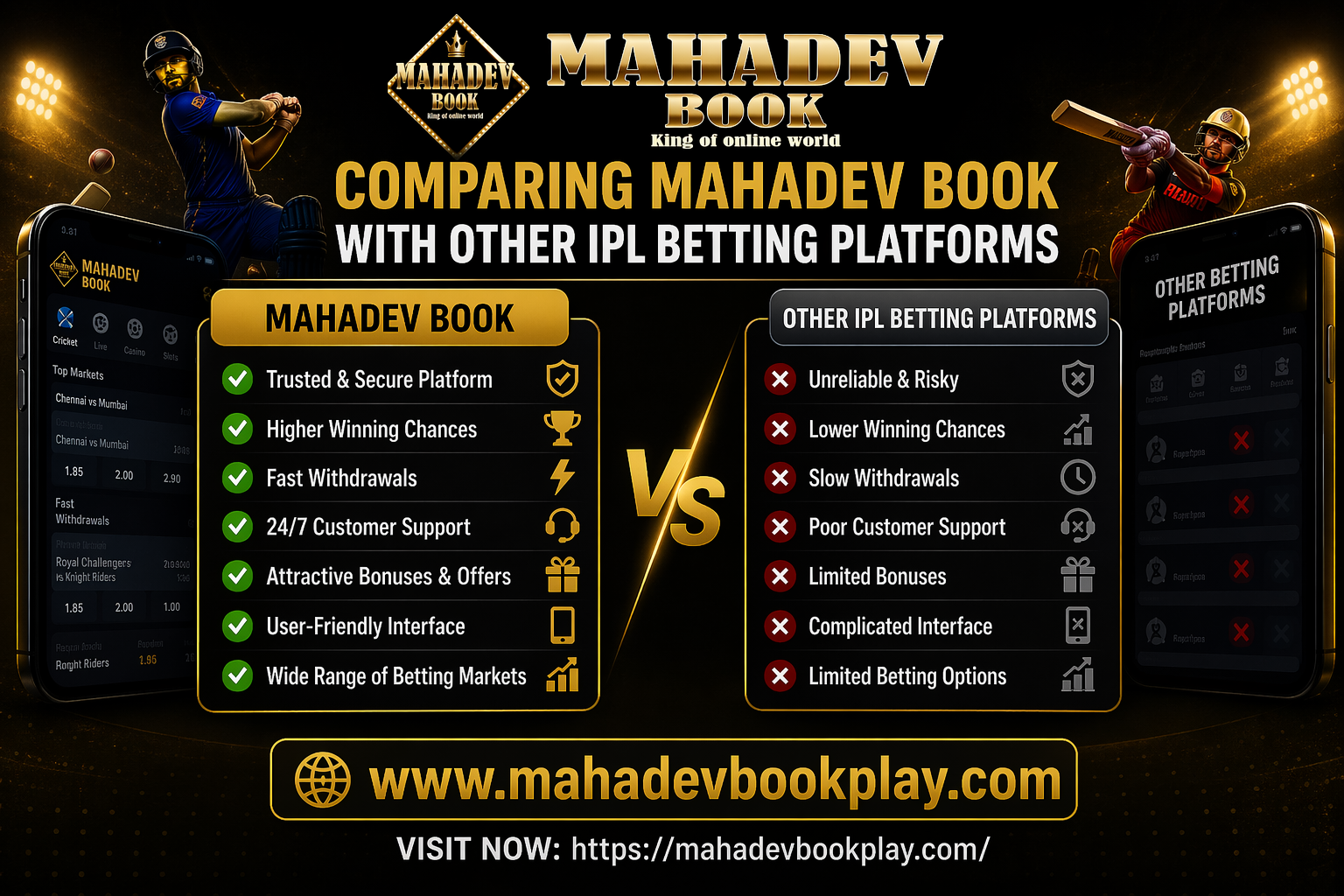 Compare Mahadev Book with leading IPL betting platforms like Laser247 and Gold365. This guide explores key features such as fast withdrawals, easy Mahadev Book Login, and quick access through Mahadev Book ID. Discover benefits like instant support via Mahadev Book Customer Care Number and WhatsApp, along with multiple betting options including IPL Betting ID, Online Betting ID, and Online Cricket ID for a seamless IPL betting experience.