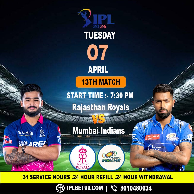 The IPL 2026 season heats up as Rajasthan Royals clash with Mumbai Indians in Match 13. Taking place in Guwahati at 7:30 PM, this IPL match is expected to be full of drama and big moments. With Online Cricket ID access, fans can enjoy live updates, scores, and match coverage instantly. Our online cricket platform is designed as a safe and secure platform with 24/7 availability in India. Enjoy live updates, online exchange, and matches through a user-friendly pl