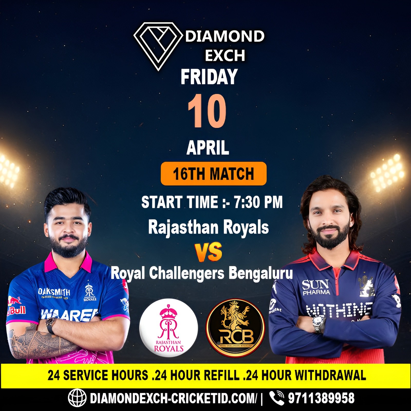 Rajasthan Royals tackle Royal Challengers Bengaluru inside the sixteenth fit of IPL 2026 at Barsapara Cricket Stadium, Guwahati nowadays at 7:30 PM.With a Diamond Exchange ID, experience stay remark, actual-time updates, and a secure, consistent enjoy even as following every thrilling second of this interesting encounter.