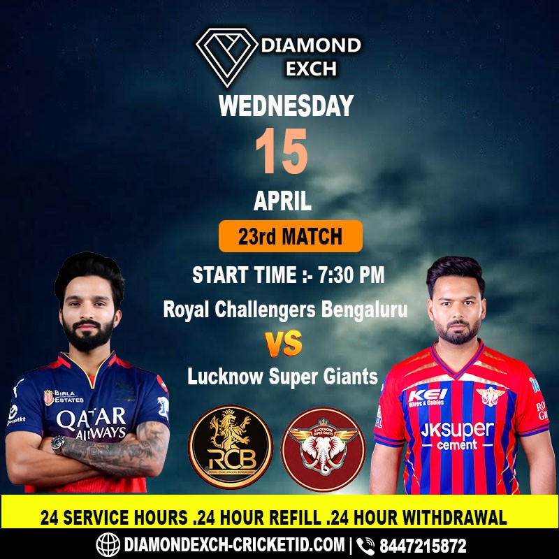 Diamond Exchange brings you live coverage of the exciting match between Royal Challengers Bangalore and Lucknow Super Giants in Match 23 of the Indian Premier League 2026. Today, M.K. Watch every second live from Chinnaswamy Stadium at 7:30 PM with instant updates, secure access and 24/7 guides.